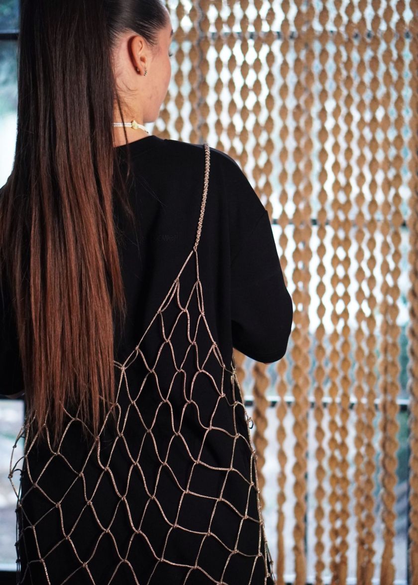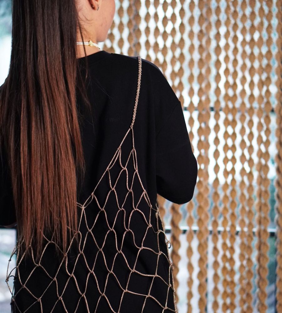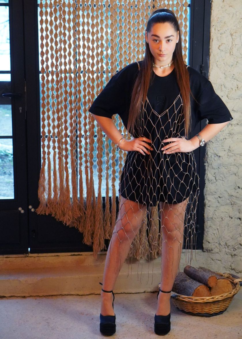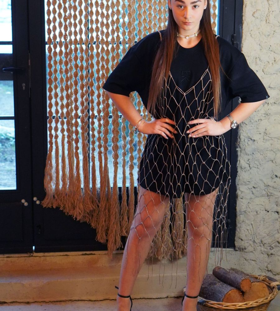Χειροποίητο φόρεμα  μακραμέ  one size με χρυσή glitter κλωστή! Μπορείς να το φορέσεις με χίλιους δυό τρόπους και να δώσεις άλλον αέρα στο καθημερινό λουκ σου! Φόρεσέ το με μεσοφόρι σαν φόρεμα ή με το πιο απλό oversized μπλουζάκι σου αλλά και με jean για cool  layering, ακόμη και με το μαγιό σου το καλοκαίρι! Ιδανικό για όλες τις εποχές του χρόνου. υλικό: νήμα macrame glitter 85% πολυεστέρας _ 15% glitter   Το μπλουζάκι δεν συμπεριλαμβάνεται.